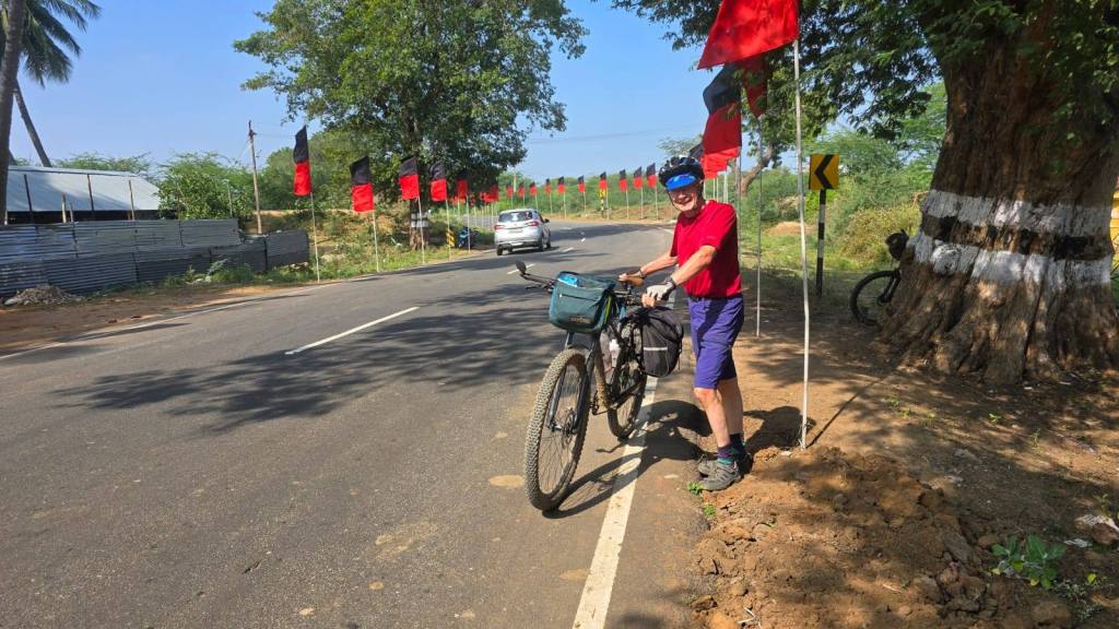 63 miles. A mostly enjoyable ride. Few busy roads. We were out of Thanjavur before it got busy. On the way out a local cyclist, Joshua, joined us for a couple of miles. We enjoyed the chat.