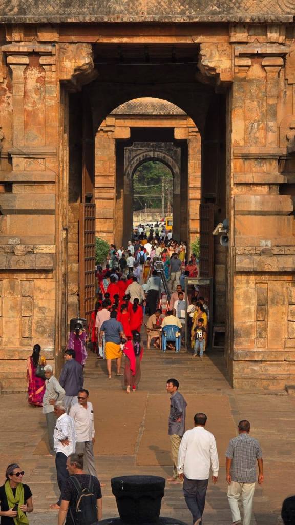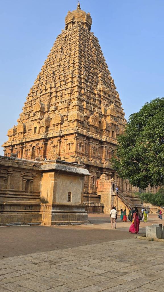 We arrived in Thanjavur in time for lunch. We had some very good samosas and “chats” wth a nice balance of spices. We rinsed through our kit then took a tuktuk to the Big Temple. It’s impressive. The suggestion of how they got the 50 ton stone on the top of the tower is that they built a ramp 6.1 km long!